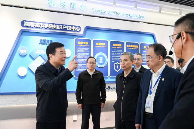 陈飞先后实地走访了永利知识产权中心、设计研究院有限公司,考察校地合作、技术转移转化和科技成果转化工作。参观过程中,陈飞表示,学校要持续优化学科专业设置,聚焦特色学科谋发展,做优做强“城市类”特色学科。科技成果转化要紧密对接益阳产业,服务地方经济高质量发展。