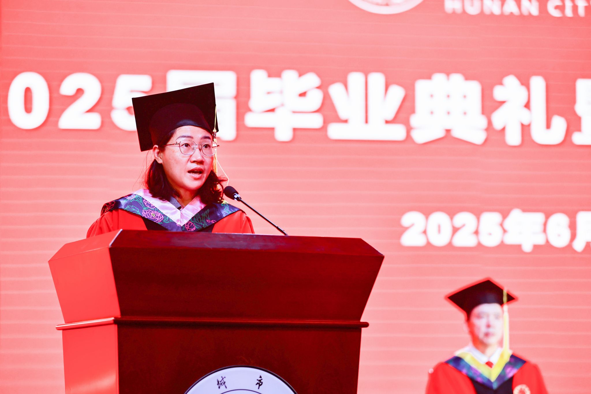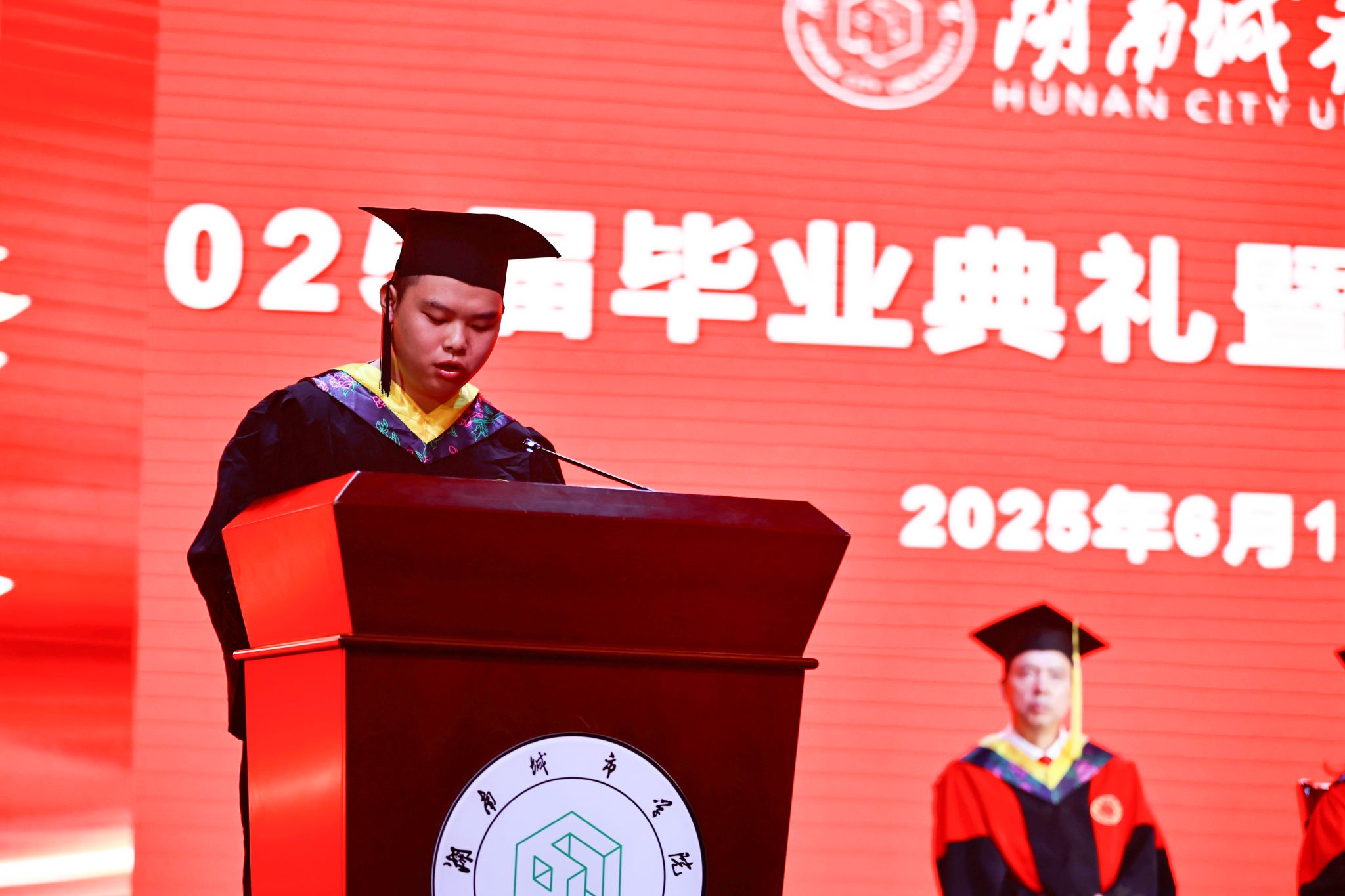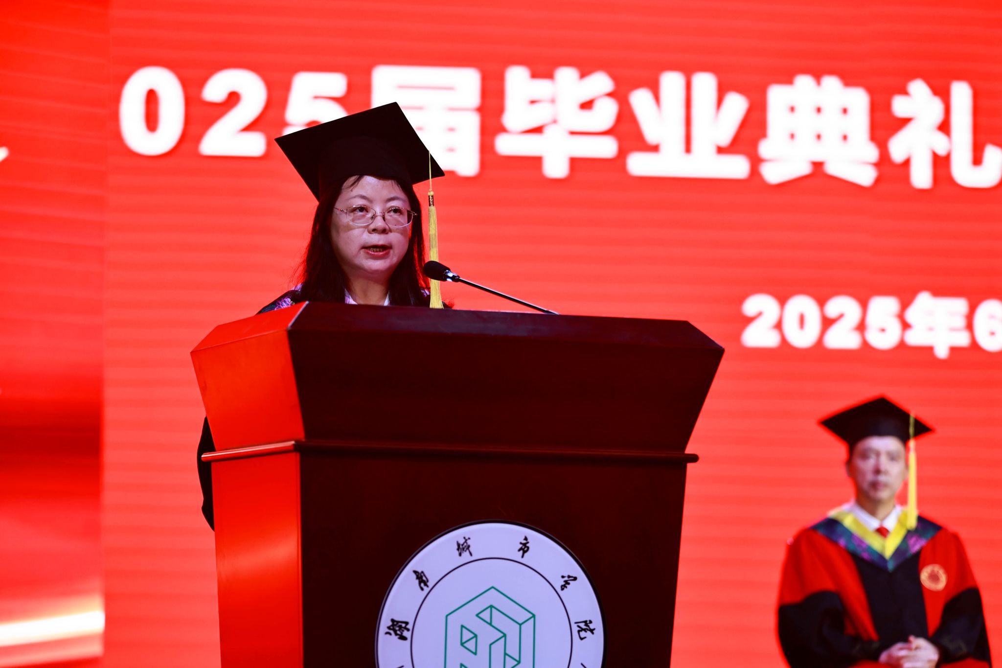 研究生毕业生代表、城乡规划学专业李婷婷在发言中表示,无论未来身处何方,永怀对土地与人民的敬畏与深情,以专业之笔,饱蘸责任与创新之墨,在神州大地的经纬间,精心描绘和谐、活力、永续的人居画卷。
