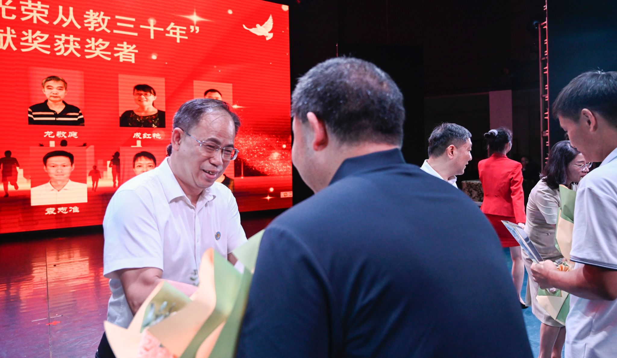 本网讯(通讯员 郑重宇) 9月9日下午,学校在音乐厅举行庆祝第41个教师节暨优秀教师表彰大会,全体校领导、各二级单位负责人以及受表彰对象、新进教师、教职工代表齐聚一堂,共同见证荣光,共话教育使命。