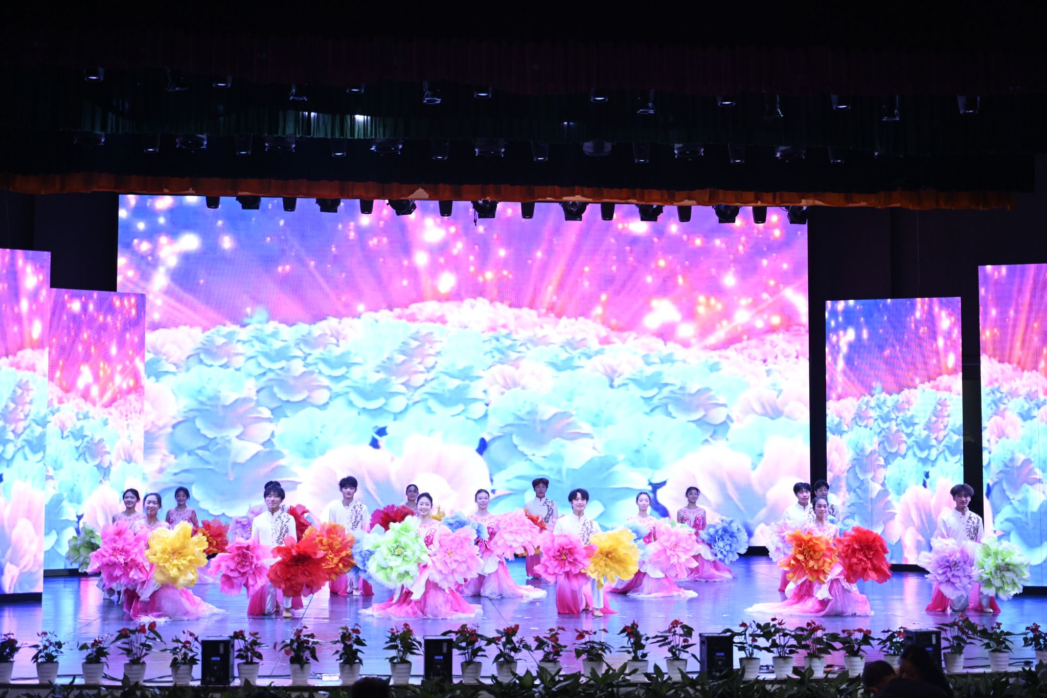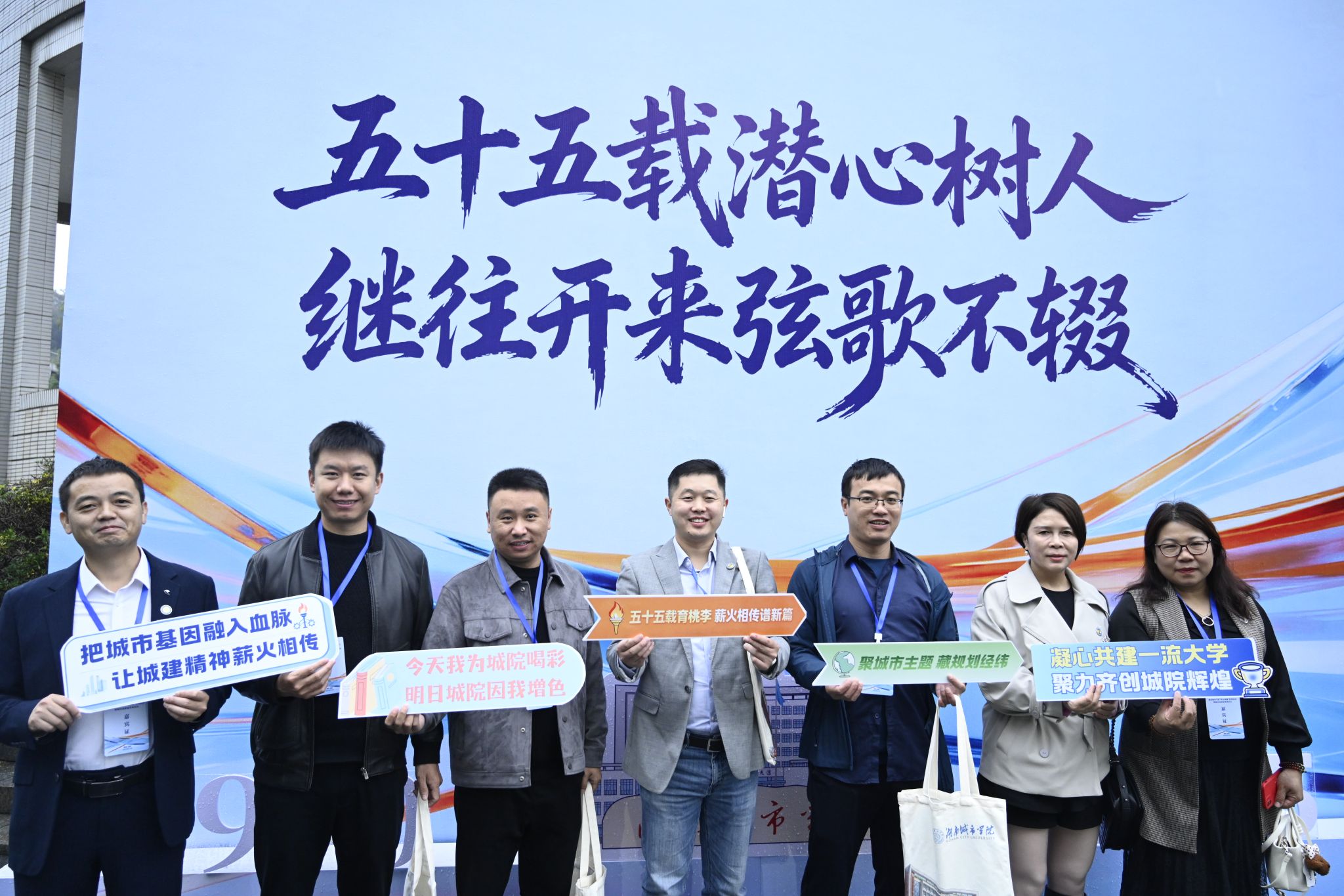 校园内彩旗高挂,巨大的宣传展板分外醒目,广大校友从大江南北回到魂牵梦萦的母校。学校音乐厅内洋溢着欢庆祥和的浓厚氛围,悠扬的音乐不绝于耳,璀璨的灯光交相辉映,大屏幕循环播放学校办学55周年主题宣传片《城市之光》,舞台两侧“五五传薪 树蕙滋兰 匠心熔铸千秋业”“久久为功 筑城强基 铁肩扛鼎万代梁”的对联异常显眼。四百余名校友、嘉宾、师生代表齐聚一堂,共话永利校友情谊,共襄城市发展蓝图。