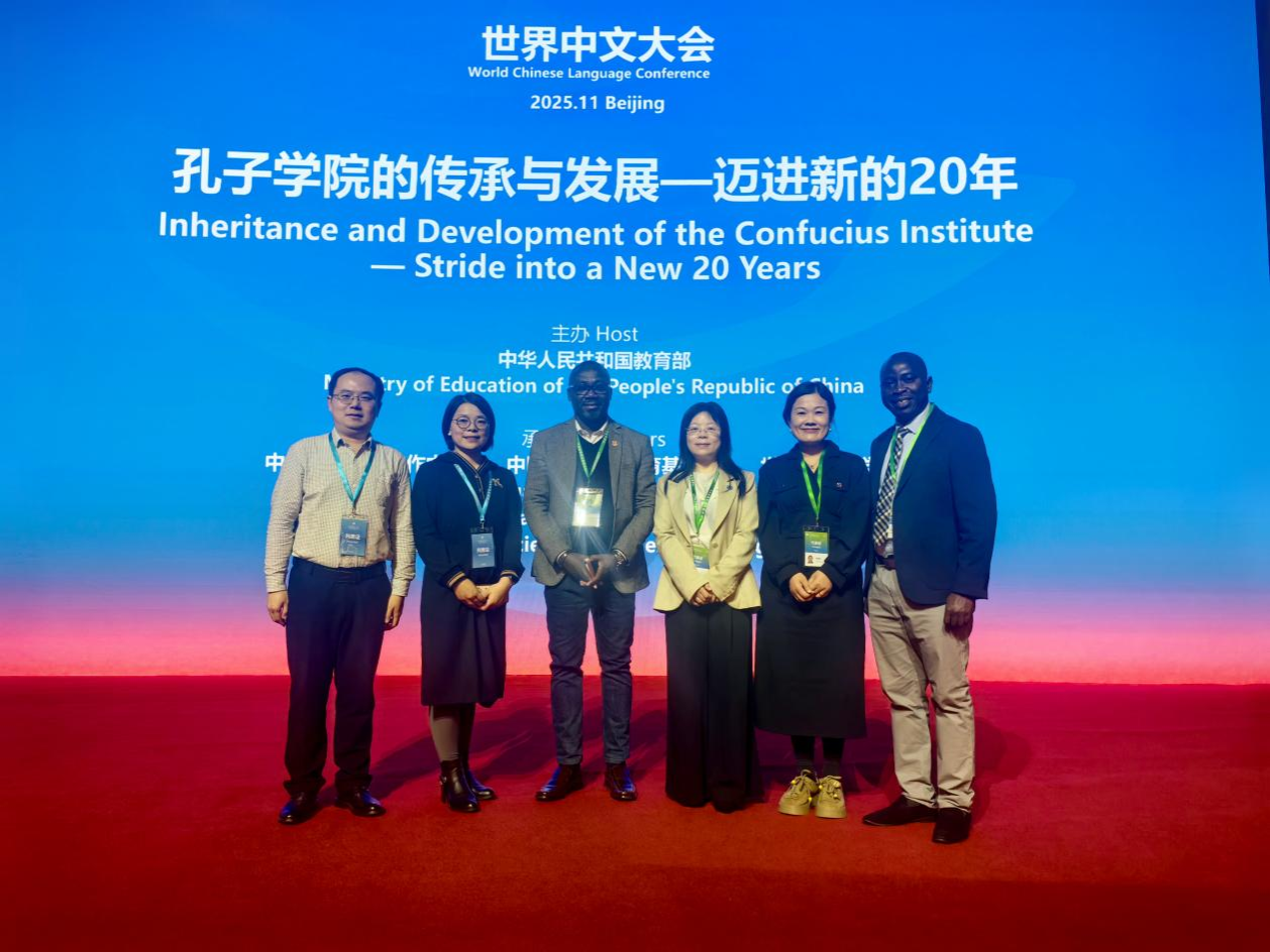 会上,加纳海岸角大学孔子学院成功获批成立“非洲本土中文教师区域培养培训中心(西非)”,教育部中外语言交流合作中心主任郁云峰为学校授牌并合影留念。双方校领导分别接受媒体采访并分享两校交流合作取得的成就。