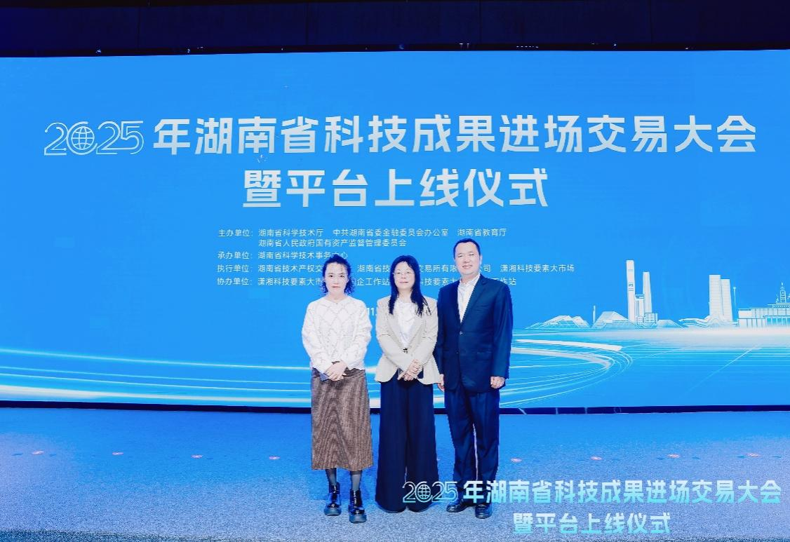 本网讯(通讯员 徐智超)11月28日,由湖南省科学技术厅主办的2025年湖南省科技成果进场交易大会暨平台上线仪式在长沙举行。省科技厅厅长朱皖出席并致辞,省教育厅等省直有关单位、各市州科技局、部分高校院所、潇湘科技要素大市场各分市场相关负责同志及企业代表参加。副校长徐姝代表学校参加大会,参与高校院所与合作单位签约仪式,以实际行动推动学校科技成果高效转化,促进校企深度合作,服务区域创新发展。
