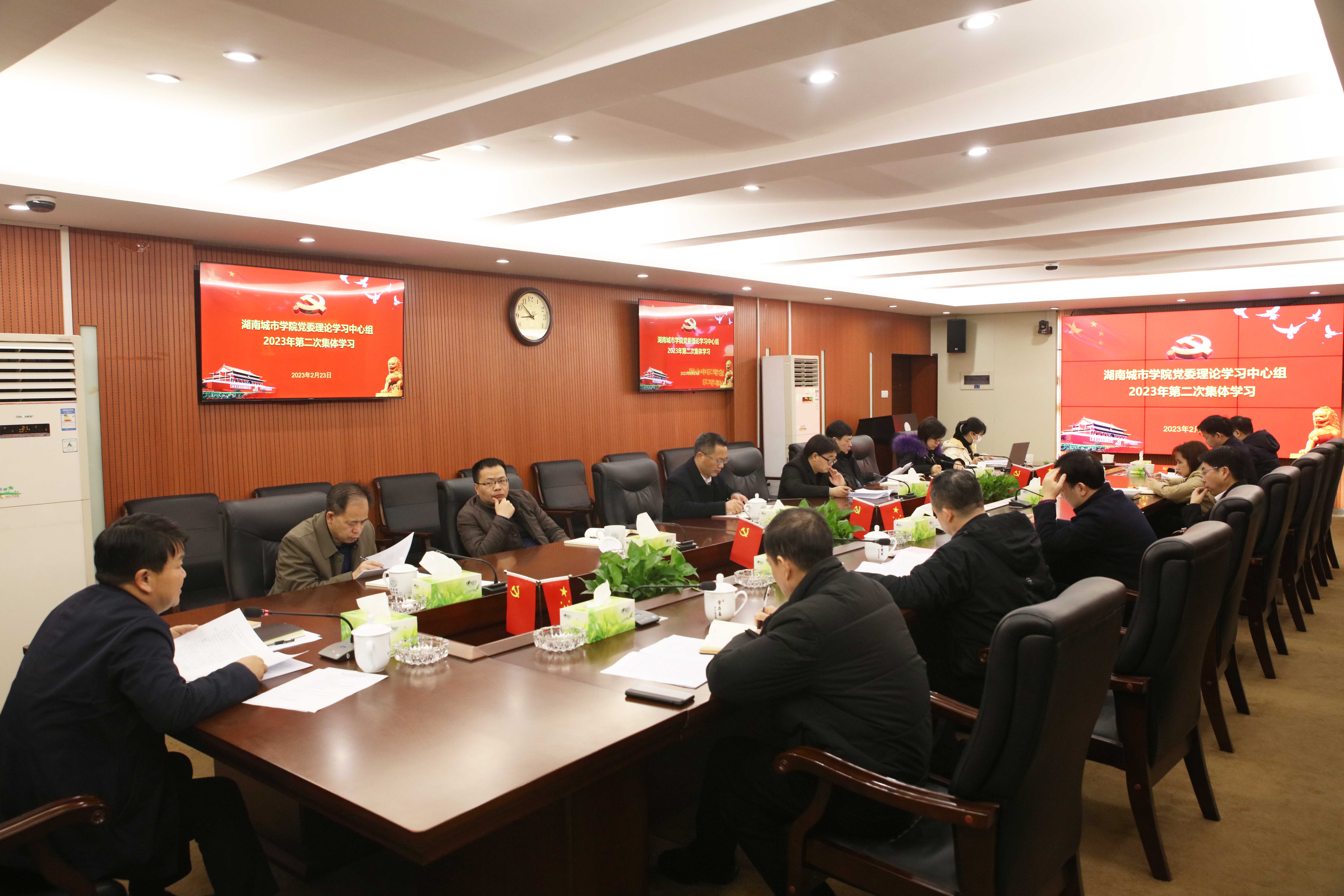 本网讯(通讯员 周文娟)2月23日上午,学校党委理论学习中心组在办公楼一会议室开展2023年第二次集体学习。党委理论学习中心组成员参加集体学习,校党委书记汤放华主持会议并讲话。