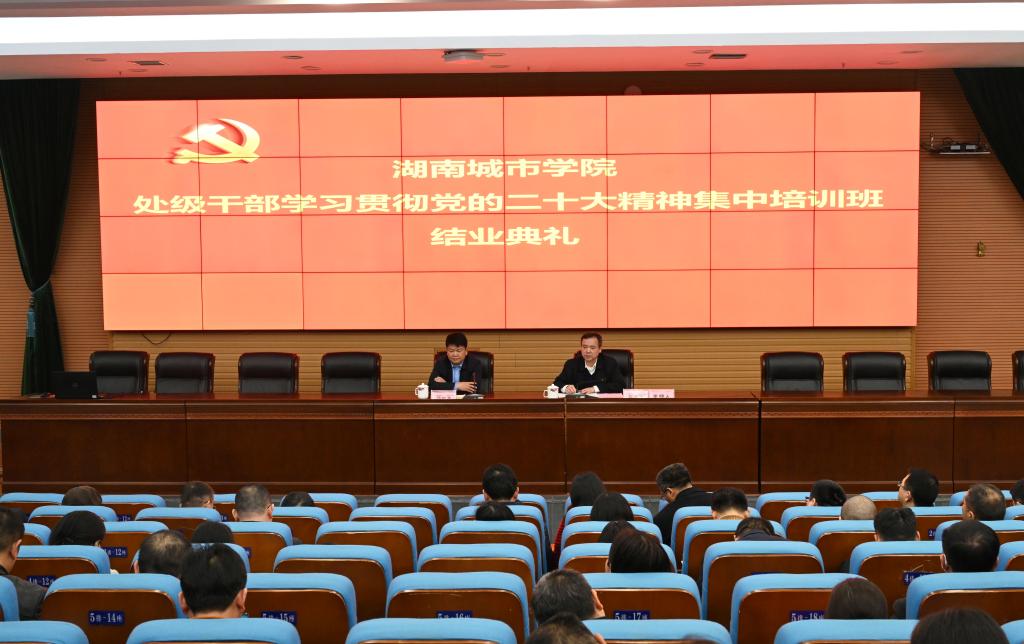 本网讯(通讯员 刘淑莉)3月18日,永利在图书馆报告厅举行“学习贯彻党的二十大精神处级干部培训班”结业仪式。学校党委书记汤放华出席结业仪式并讲话,党委委员、组织部部长吕贤军主持。在家的校领导以及处级以上领导干部参加结业仪式。