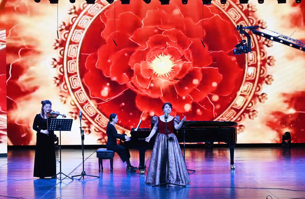 文艺汇演分为“奋斗百年路”“奋进新征程”两个篇章,以器乐合奏《光明行》激昂的旋律拉开晚会序幕,现场观众在丝竹管弦民乐演奏中领略祖国山河的秀美壮丽,重温党的光辉历史进程;弦乐四重奏《我爱你中国》、歌曲《美丽中国》、《花儿为什么这样红》、《我心中的红》表达了青年学子对祖国的无限热爱与深深祝福;“历史长河波澜壮阔,一代又一代人接续奋斗创造了今天的中国”,学子们在《如愿》中用清澈的嗓音诉说着中国人民血脉里割舍不了的情感羁绊;歌舞《八百里洞庭美如画》描绘了风光秀丽,景色如画的江南鱼米之乡;《守护》以蹁跹的舞姿,舞出了少数民族与红军之间诚挚的革命情谊;“点点星火,汇聚成炬”,《中国上场》以铿锵有力的朗诵,诠释了什么是真正的中国力量;京剧《武家坡》则用戏曲讲好中国故事,彰显文化自信;歌舞《益起向未来》、合唱《领航》表现了永利青年在坚定跟党走的路上昂首阔步,用最动听的歌声,唱出新时代最美的旋律,用最动人的舞姿,跳出新征程最炫的节拍。