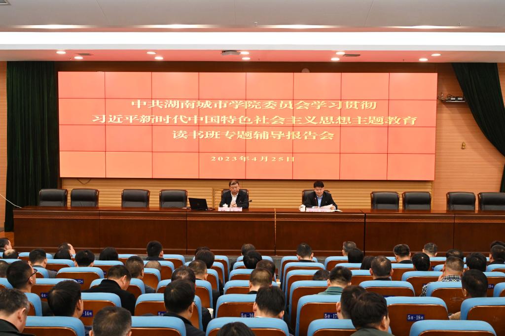 本网讯(记者 文彦波)4月25日晚,yl6809永利集团官网学习贯彻习近平新时代中国特色社会主义思想主题教育读书班在图书馆报告厅开班。湖南工业大学党委书记刘望应邀作专题辅导报告。学校党委书记汤放华主持报告会并作动员讲话。学校副处级以上领导干部参加读书班。