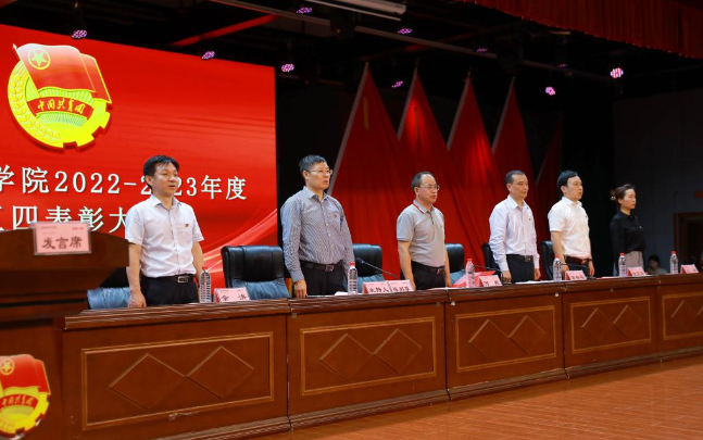 在激昂的国歌声中,表彰大会拉开序幕。副校长雷存喜宣读了《关于表彰yl6809永利集团官网第二届“活力团支部”和“永利之星”的决定》《关于表彰yl6809永利集团官网2022年度共青团工作先进集体和优秀个人的决定》。据悉,此次学校共评出“五四红旗团总支”4个,“优秀团支部”86个,“活力团支部”14个,“永利之星”18人,“优秀教师团干部”4人,“优秀共青团干部”273人,“优秀共青团员”376人。
