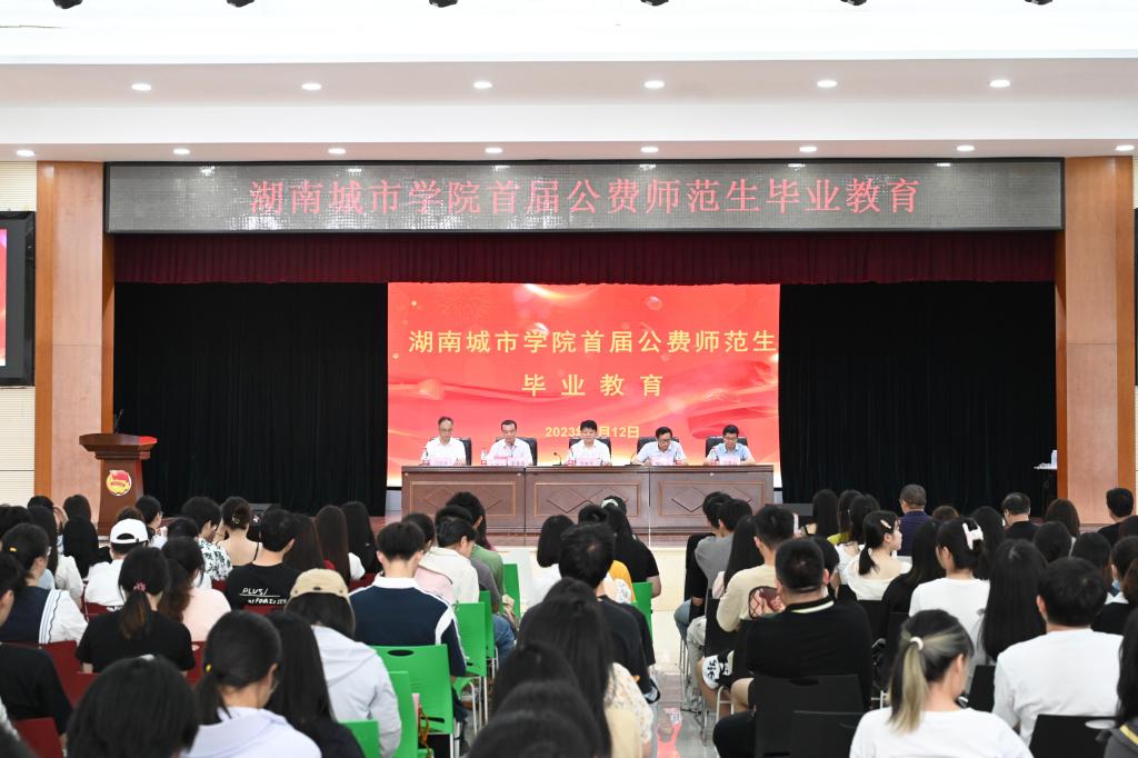 本网讯(供稿:教务处)6月12日,yl6809永利集团官网首届公费师范生毕业教育主题活动在学校学生活动中心举行。益阳市人民政府副厅级干部喻国良、益阳市教育局相关领导,校党委书记汤放华、副校长雷存喜出席,相关二级学院党委书记、教学副院长、教务处负责人以及2023届公费师范毕业生参加了此次活动。活动由雷存喜主持。