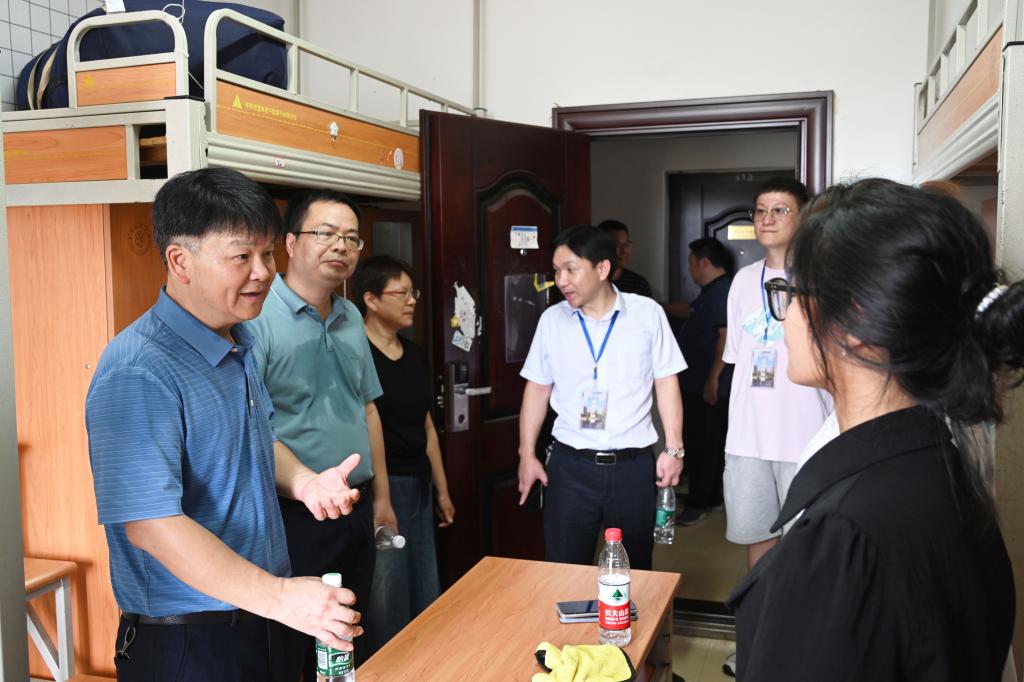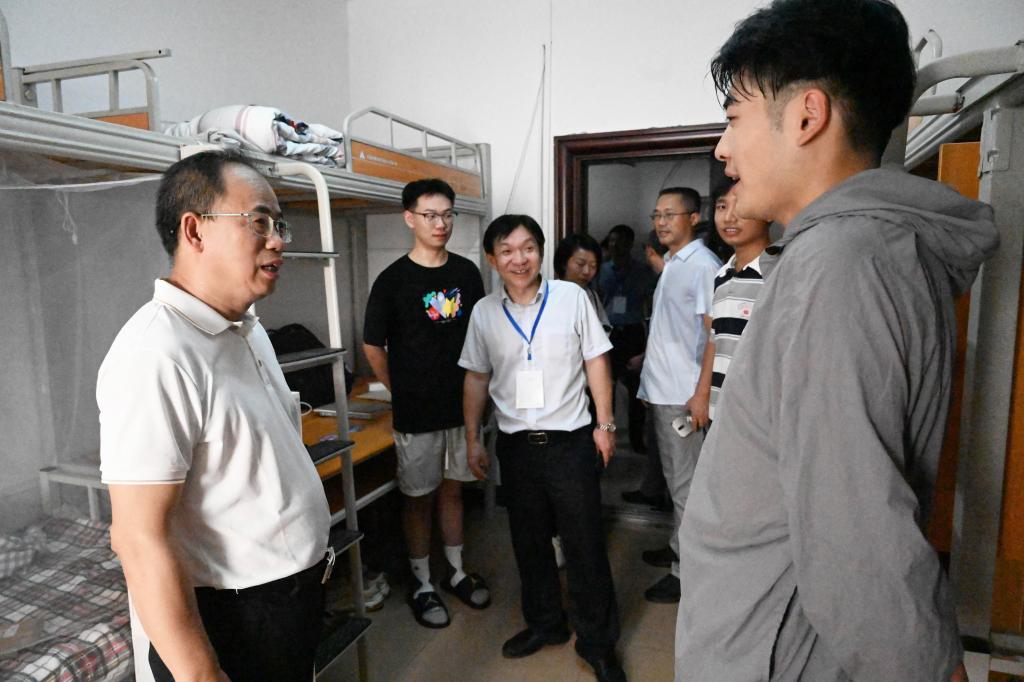在学生宿舍10栋100室,何振与就读于测绘工程专业的新生牛明辉亲切交流。“对住宿条件还满意吗?生活上还有什么困难没有?”短暂的寒暄后,何振勉励他认真学好专业文化知识,用精准测绘为国家建设保驾护航,将个人小我融入祖国大我,在新时代新征程中展现永利学子风采。