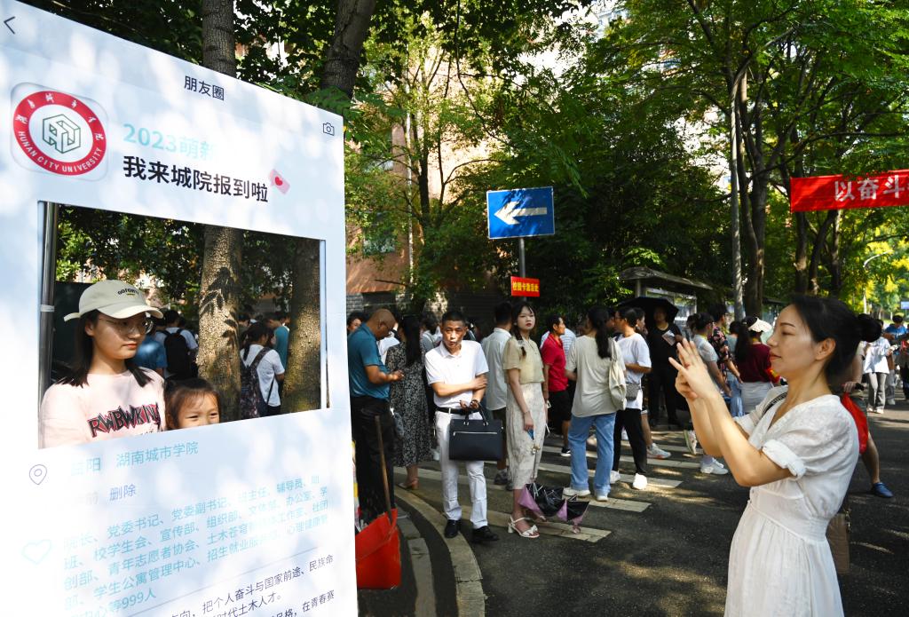 各二级学院与团委、宣传部、餐饮中心“高招”频出,精心准备了各种“花样”迎新活动,让新生们感叹仪式感“爆棚”。团委在迎新点两侧搭建了“欢迎小橙子”特色打卡装置,吸引不少新生、家长在此驻足打卡。土木工程学院以微信朋友圈为背景制作了创意打卡墙,上面既有老师、学长对“萌新”的点赞,还有对他们的深深寄语。宣传部开展了“迎新橙心映象”活动,“新橙子们”纷纷在背景墙前与家长、新同学合影留念,并在现场打印出的照片背面写下自己对未来的期许。在第一餐饮中心,高高立起的大红气拱门分外喜庆,推出各种美食招待来自远方的客人。