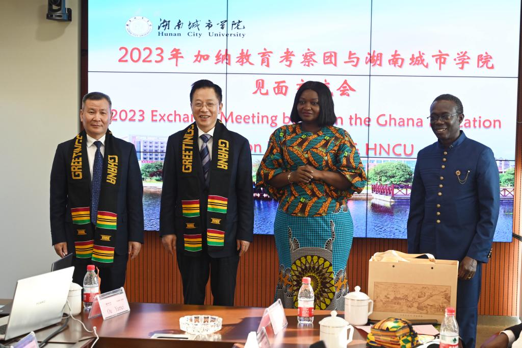 夏智伦代表湖南省教育厅向加纳教育考察团的到访表示热烈欢迎,简要介绍了湖南省教育总体情况以及yl6809永利集团官网依托加纳海岸角大学孔子学院在加强中非教育合作方面发挥的重要作用。他指出,随着中加关系蓬勃发展,各领域合作全方位展开,两国高等教育交流合作迎来了前所未有的大好机遇。希望双方能开展更多层次、更多领域、更多形式的教育合作,特别是共同把孔子学院办得越来越好,促进湖南省与加纳教育交流合作上新水平。
