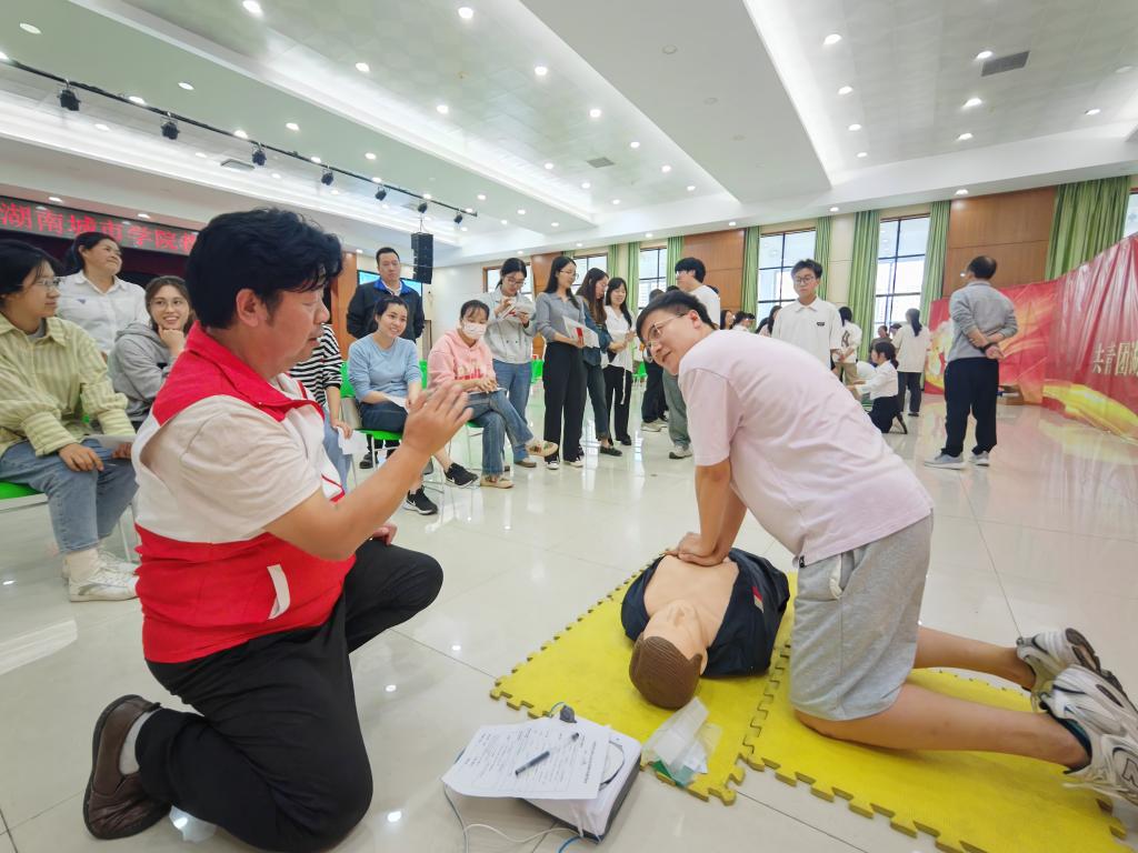 本网讯(通讯员 孔军)“正确的心肺复苏术实施步骤需要30次按压、2次人工呼吸交替进行,并保持每分钟100至120的频次和每次5至6厘米的按压深度……10月24日,在学校学生活动中心,永利80余名师生现场接受了益阳市红十字会紧急急救培训和心脏除颤仪(AED)使用培训。