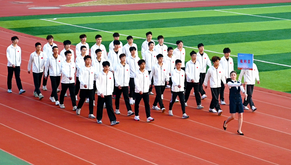 伴随着激昂的进行曲,英姿飒爽的护旗手高举国旗、校旗率先入场,校训方阵、教导队方阵、裁判员方阵、志愿者方阵、各二级学院运动员代表方阵紧随其后,依次入场,他们气宇轩昂、精神抖擞,迈着铿锵有力的步伐,阔步走向主席台,展现出永利学子们开拓创新、勇往直前的精神风貌。