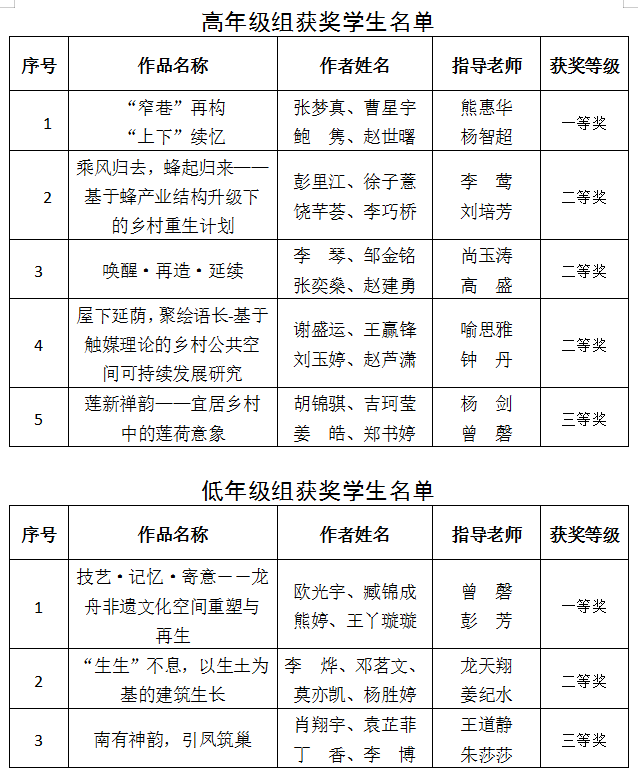湖南省大学生可持续建筑设计竞赛是全省普通高校大学生学科竞赛活动,旨在进一步深化省内各高校建筑学等相关专业教学改革,提升人才培养质量,加强相关院系之间的学科交流,展现学生的综合实践能力和专业教育教学成果。本次竞赛以“重生计划--乡村绿色建筑”为主题,共有来自省内包括中南大学、湖南大学等在内的17所高校参加,通过各高校校赛选拔,共收到17所高校288组作品,其中高年级组178份,低年级组110份,经由省内建筑知名专家组成的评审委员会组织复赛,永利建筑与城市规划学院共有8件作品入围,最终荣获高年级组一等奖1项,二等奖3项,三等奖1项;低年级组一等奖1项、二等奖1项、三等奖1项。同时,曾磬和熊惠华两位老师获评竞赛优秀指导老师。