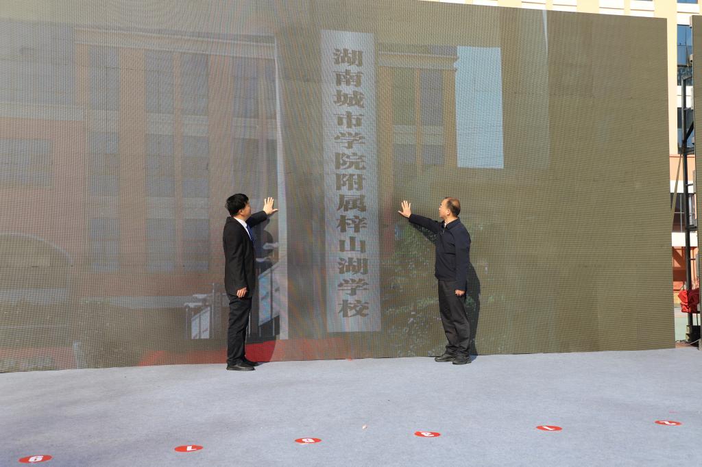 永利党委书记汤放华、赫山区区委书记周卫星为yl6809永利集团官网附属梓山湖学校揭牌。