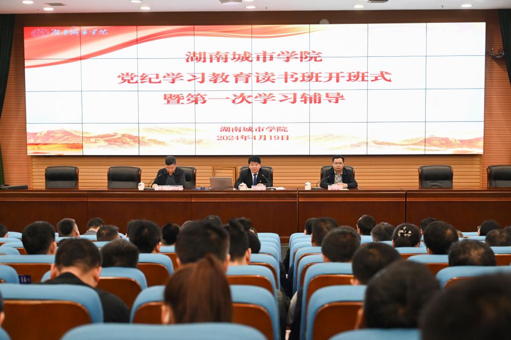 本网讯(通讯员 钟仁理)为深入学习贯彻《中国共产党纪律处分条例》,落实党中央、湖南省委关于党纪学习教育的工作部署和要求,4月19日上午,学校举办党纪学习教育读书班开班仪式,深研细读新修订的《中国共产党纪律处分条例》(以下简称《条例》),推动全校党纪学习教育走深走实。党委书记汤放华强调,要深入开展党纪学习教育工作,引导全校党员干部学纪、知纪、明纪、守纪,进一步强化纪律意识、加强自我约束、提高免疫能力,始终做到忠诚干净担当,为建设风清气正的政治生态提供坚强保障。