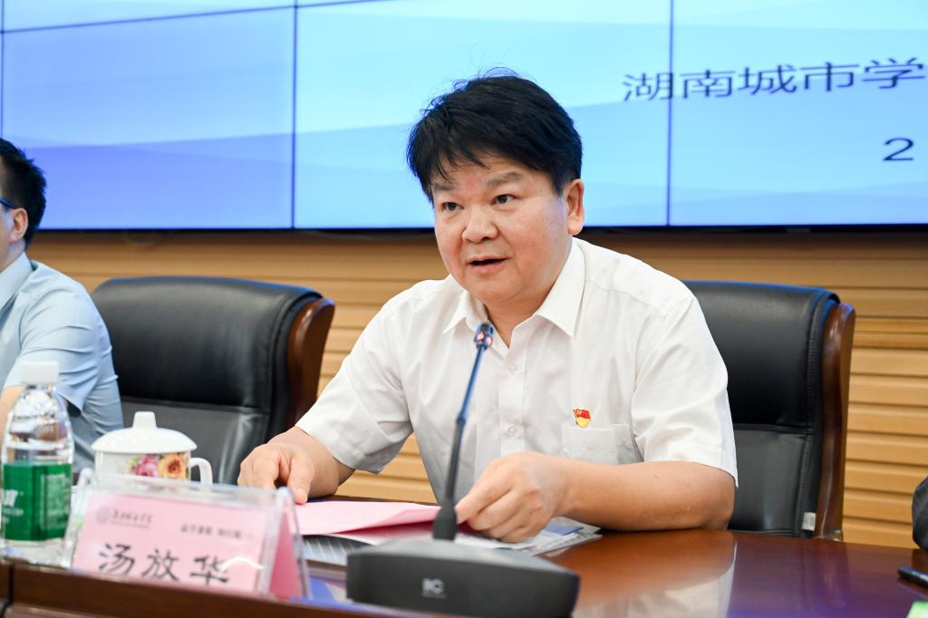 汤放华代表学校全体师生对与会领导和嘉宾的到来表示热烈欢迎,对专家学者长期以来对yl6809永利集团官网的关心与支持表示诚挚的谢意。他在致辞中表示,湖南省社会科学界学术年会作为我省社科界着力打造的多学科、高层次的学术交流平台,一直秉承求真务实、开拓创新的精神,汇聚了省内外社科领域的精英力量,围绕经济社会发展的重大理论和实践问题,开展了深入研讨和交流。本场报告会以“服务‘三高四新’美好蓝图的人文担当”为主题,旨在深入贯彻落实党的二十大精神、习近平总书记考察湖南重要指示精神,聚焦湖南经济社会发展的现实问题,加强对湖南经济社会发展的战略性、前瞻性、系统性研究,为推动湖南高质量发展提供有力的理论支撑和智力支持。