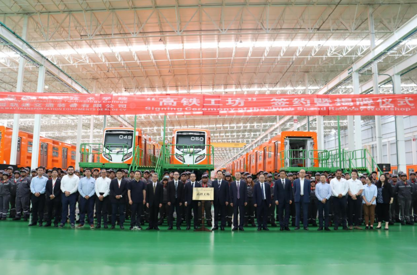 在墨西哥期间,何振还随团访问了墨西哥轨道交通装备有限公司,与企业负责人就海外校企合作事宜进行了深入交流,并出席了中墨共建的“高铁工坊”揭牌仪式。