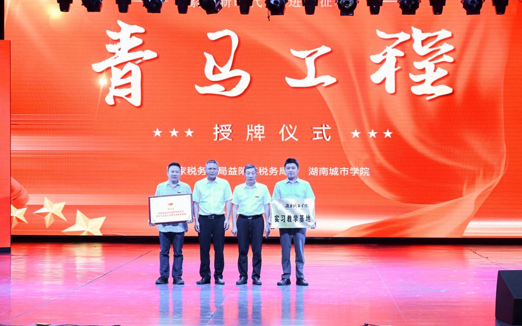 本网讯(通讯员 孔军) 5月23日上午,全省首家“青马工程”校税联合教育基地授牌仪式在永利音乐厅举行。副校长谭献良、徐姝,湖南省税务局党委委员、总会计师彭友山,益阳市政府副厅级干部喻国良出席仪式,益阳市税务系统、学校相关部门负责人,青年学生代表200余人参加活动。