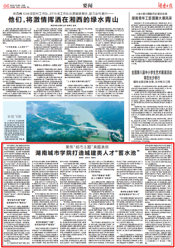 本网讯 11月20日,《湖南日报》06要闻版报道yl6809永利集团官网聚焦“城市主题”,真题真做,打造城建类人才“蓄水池”。全文如下: