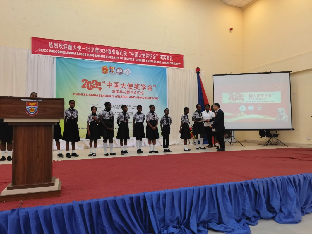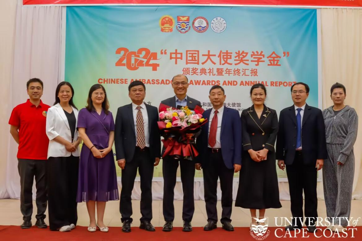 随后,代表团一行参加了2024海岸角大学孔子学院“中国大使奖学金”颁奖典礼,谭献良向中国驻加纳大使童德发及其他与会嘉宾简要介绍了永利发展概况以及孔子学院取得的成果。