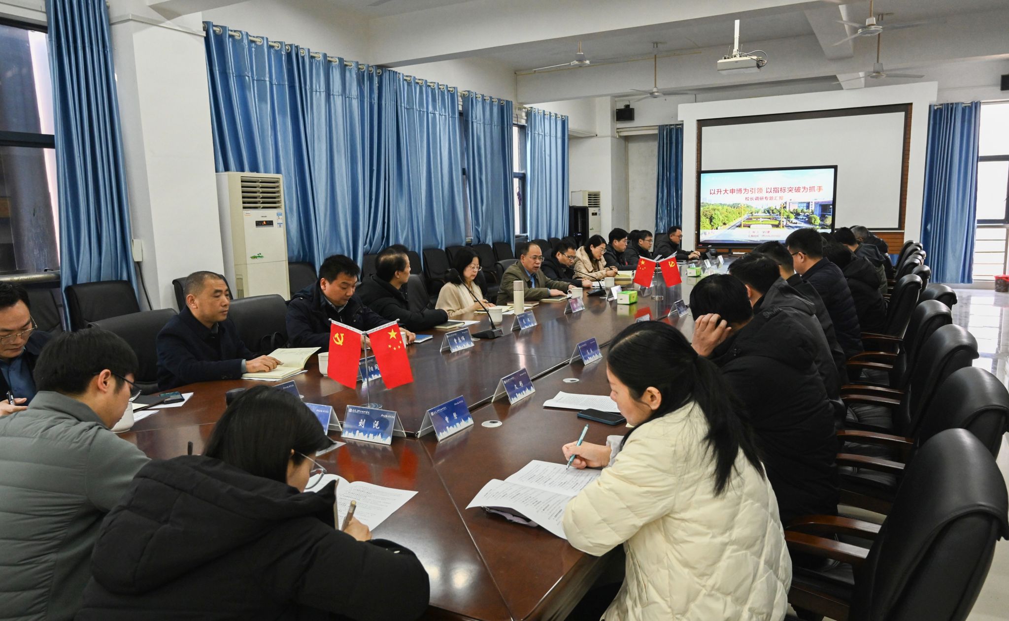 各二级学院结合“升大申博”目标规划和2025年度重点工作,分别汇报了党建思政、人才培养、学科建设、科研创新、师资引育和社会服务等方面的工作思路、具体举措,着重分析了教学成果奖申报、高层次人才引进、平台打造等方面存在的问题和难点,针对性提出了新学期相关工作安排和目标任务。