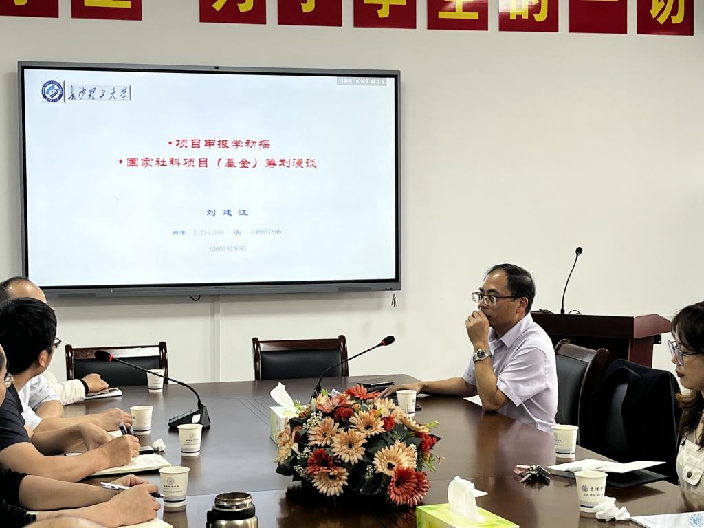 刘建江教授从项目申报学角度解读了项目申报的哲学内蕴、项目申报书的七性、项目申报心理解析、科学研究(项目)层级论等项目申报基础理论;从平台的重要性、平台与个人的关系、伯乐与千里马的关系等讲解了项目申报实践。刘建江教授建议教师们在申报科研项目时要有信心与情怀;要有短期、中期及长期目标;要学会借力和静心。讲座结束后,刘建江教授与与会教师就选题进行了充分交流探讨。