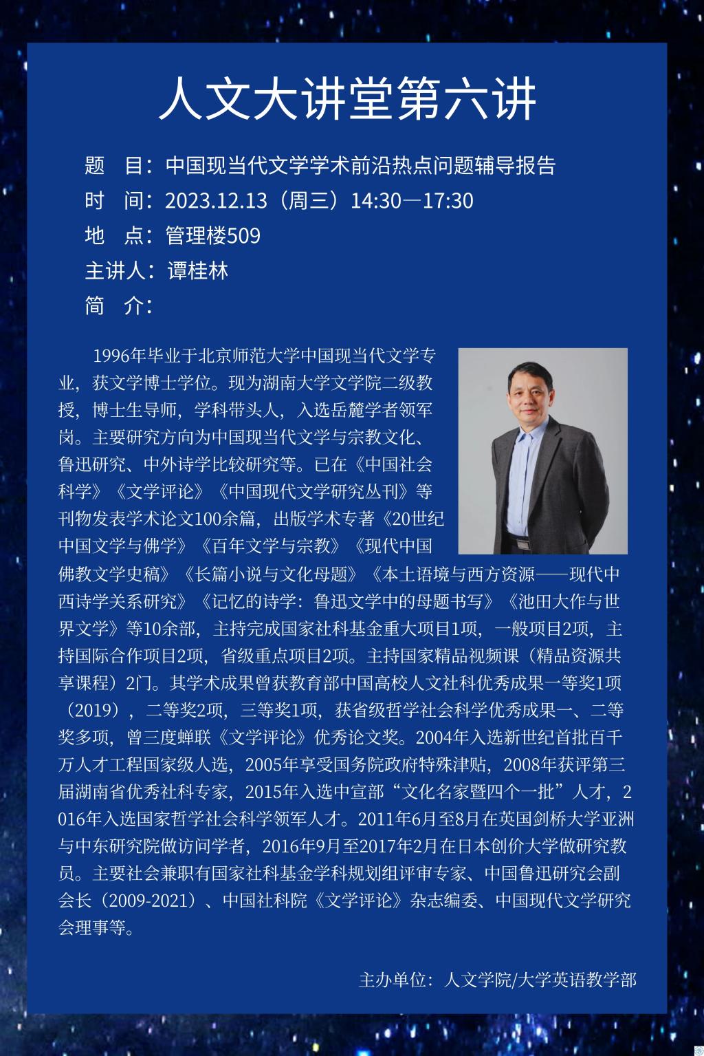 下一条:学术预告|人文大讲堂第五讲—中国现当代文学学术前沿热点问题辅导报告