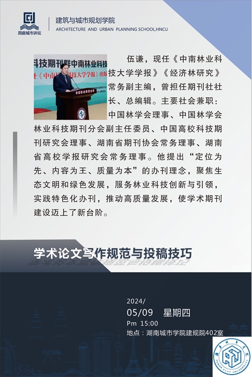 本网讯(通讯员 尚玉涛)2024年5月9日下午,永利邀请中国林学会理事、中国林学会林业科技期刊分会副主任委员、中国高校科技期刊研究会理事、湖南省期刊协会常务理事、湖南省高校学报研究会常务理事、《中南林业科技大学学报》《经济林研究》常务副主编伍谦,为永利研究生作“学术论文写作规范与投稿技巧”的学术讲座。