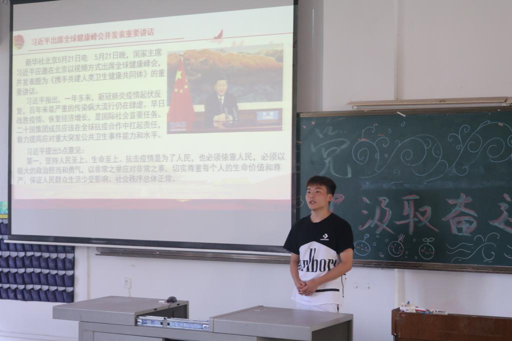 本次政治学习从“奋斗百年,启航新程”、“知史爱党,知史爱国”、“砥砺前行,书写华章”、“筑梦人生,放飞梦想”四个版块进行深入讲述剖析。本次政治学习首先向大家提问了“10道题”,从习近平主席的讲话中得到了答案——人民。“人民”二字重千钧,我们党的根基在人民,血脉在人民,力量在人民。为中人民谋幸福,为中华民族谋复兴的初心和使命,中国共产党人不驰于空想,不骛于虚声,一步步实现美好蓝图。之后,向同学们介绍了百年前那些为共产主义事业奋斗终身,甚至牺牲的革命先烈、现代有着重要贡献的科学家等,介绍了他们那些令人感动的故事以及伟大的成就。让同学们更加了解党的建设以来的重要贡献者,学习他们爱党爱国,无私奉献的精神。同时,也讲述了yl6809永利集团官网第四次代表大会开幕的内容。最后,向临近期末考试的同学们介绍了学分绩点和考试的纪律问题。希望同学们可以端正自己的考试态度,严格遵守考试纪律。
