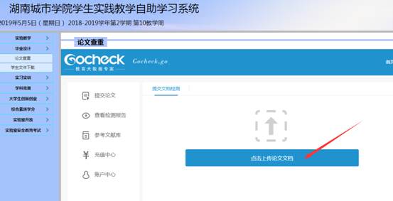 永利毕业综合训练管理系统目前已完成与gocheck论文检测系统的对接,学生在上传终稿后且经指导教师在系统中允许后可对终稿正文进行自测。学生可自行免费检测2次,免费查重次数用完后,需要在gocheck检测系统里充值进行查重。具体操作如下: