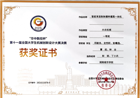 (通讯员 彭丽)7月17日,第十一届全国大学生机械创新设计大赛决赛在华中科技大学圆满闭幕。由彭丽和丁小兵老师指导,邱毅良、龙恺昕、彭曦逸、曹炫、钟全五位同学完成的yl6809永利集团官网参赛作品《智能育苗制钵播种灌溉一体机》,以湖南省第一名的好成绩入围全国总决赛,经过决赛的两轮精彩比拼,不负众望斩获最高奖项:全国一等奖,实现yl6809永利集团官网在该赛事上历史性的突破。