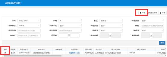 5、审核确定以后,调课审核页面将显示开课学院审批(审核通过),操作结束。