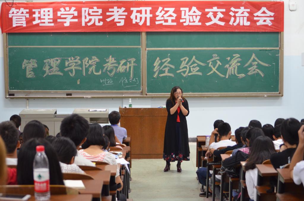 2017年9月28日晚上7:30,管理学院考研经验交流会在一教206举行。出席本次交流会的嘉宾有管理学院副院长王莉、副院长龙敬庭、党委书记莫连光、党委副书记贺望林、经济统计学系主任黄新、工程管理专业高武博士。