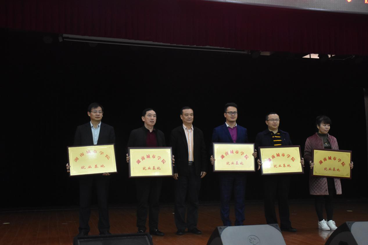 招聘会由yl6809永利集团官网招生就业处处长李梦醒主持。会议伊始,yl6809永利集团官网党委委员、副校长雷存喜致欢迎词,对来自广东省大湾区益商的用人单位表示诚挚欢迎。接着,广东省湖南益阳商会执行会长胡剑毅在讲话中表示,大湾区将全力支持与yl6809永利集团官网开展额深度校企合作,共同育人,培养更多的高技能人才。最后,雷存喜教授为广东省湖南益阳商会、深圳市益阳商会、珠海市湖南益阳商会、东莞市湖南益阳商会、中山市湖南益阳商会授予“yl6809永利集团官网就业基地”牌匾。