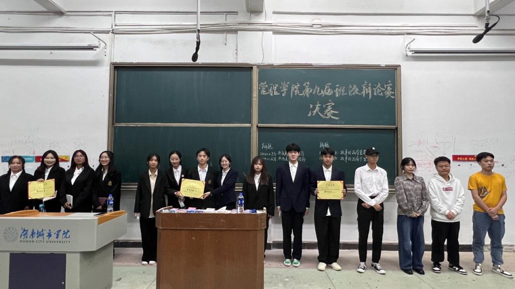 管理学院于11月11日晚7时整在一教107迎来了管理学院第九届班级辩论赛决赛。本次比赛到场的评委有管理学院团委学生会主席石潇、副主席陈雯君,管理学院演讲辩论队莫刘怡、刘祺骏、李轩,嘉宾有管理学院团委学生会主席团、部长团和管理学院演讲辩论队。