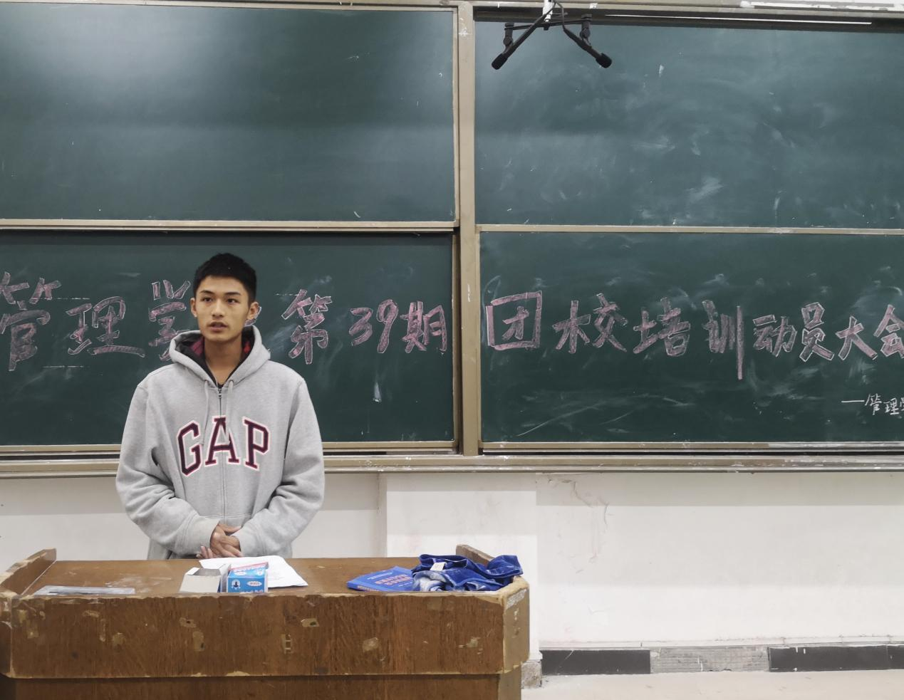 管理学院于11月18日12时20分在一教108召开第39期团校培训动员大会。本次大会组织部学生工作人员刘炳成主持,组织部部长李瑞涛、副部长陈茂中、组织部全体学生工作人员及全体团培学员与会。