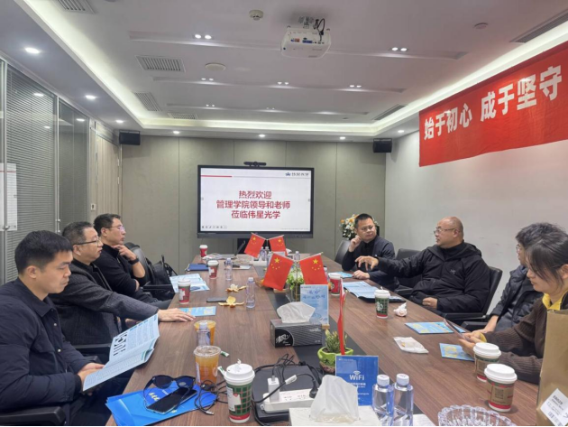 参访期间,学院领导、老师抵达伟星光学上海分公司,企业方热情接待。交流中,学院优秀校友伟星光学负责人余永波首先介绍了公司的业务布局、市场发展现状及核心业务板块。