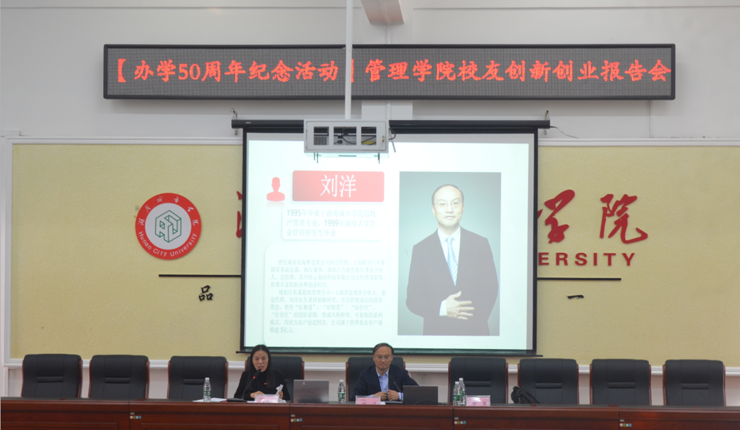 11月8日下午14点管理学院于电信楼一楼会议室举办永利办学50周年纪念活动“校友创新创业报告会”。本次会议我院邀请了92级房地产专业校友刘洋先生和2008级旅游管理专业校友张雪女士作为主讲人,由我院副院长赵旭担任主持人。