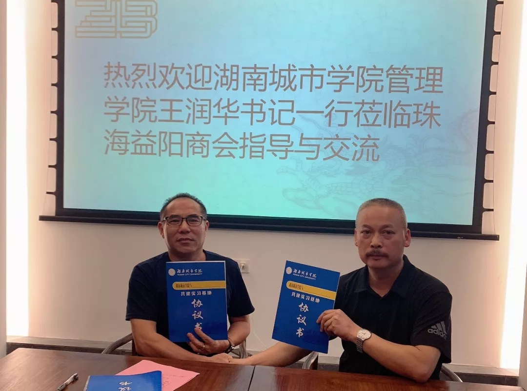 8月11日下午,珠海市湖南益阳商会与yl6809永利集团官网工作交流座谈会暨共建就业、实习基地协议书签约仪式在我会举行。会长孟建华与yl6809永利集团官网管理学院党委副书记王润华正式签订了两份协议。益阳市人民政府驻广州办事处主任王剑鸣、珠海湖南商会会长刘里仁、益阳商会名誉会长张哲夫以及益阳商会部分领导出席座谈会并见证签约。