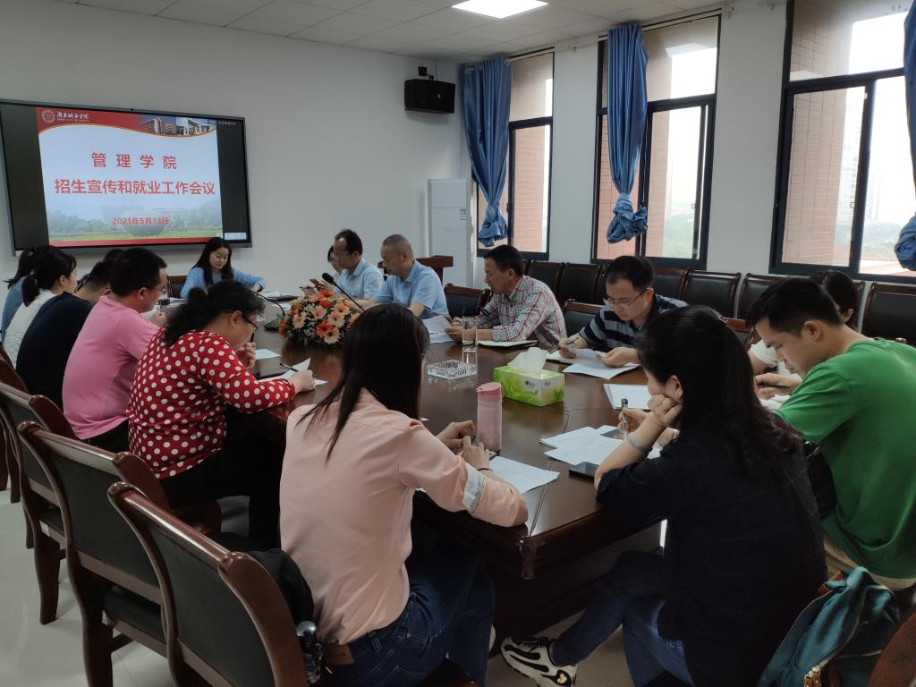 2021年5月14日下午,管理学院在管理楼622会议室召开了招生宣传和就业工作推进会议,会议由管理学院党委书记徐习军主持,学院党委副书记王润华、各教研室主任、全体辅导员老师参加会议,党委书记徐习军作重要讲话。