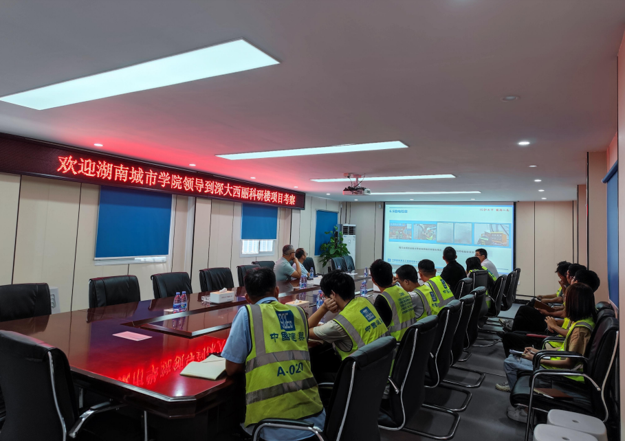 8月24日上午,王正安书记一行赴中建五局华南建设有限公司参观考察深大西丽科研楼项目,项目生产经理张永钰和商务经理颜威(工程管理2014届毕业生)重点介绍了该项目三大目标控制,同时双方就学生就业岗位、学生实习和见习期学生的培养进行了交流与讨论。最后王书记与永利在此项目上工作和实习的同学们进行了深入交谈,勉励大家要珍惜目前的工作机会,珍惜与同事学习提升的缘分,踏踏实实做事、干干净净做人,为祖国的繁荣富强贡献自己的力量。