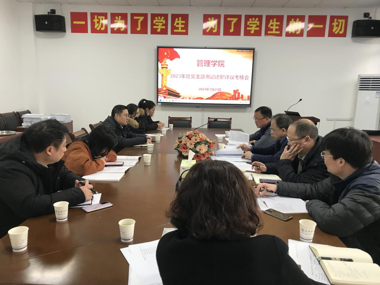 管理学院各专业教工党支部、师生联合党支部、学生党支部共11位支部书记依次述职,他们围绕深入开展学习贯彻习近平新时代中国特色社会主义思想主题教育,落实“三会一课”等工作,全面汇报了2023年度在支部党建工作方面的履职情况,对所在党支部工作进行了全面总结,分析了目前工作中存在的问题与不足,并提出了下一步工作思路及举措。