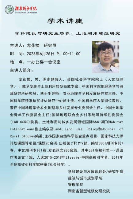 6月25日上午,英国社会科学院院士(人文地理学)、城乡发展与土地利用转型领域专家,中国科学院地理科学与资源研究所研究员、博士生导师、农业地理与乡村发展研究室主任龙花楼研究员应邀来永利进行“学科建设与人才培养”的专题讲座。讲座由学校党委书记汤放华教授主持,学科建设与发展规划处处长、研究生院院长孙倩教授、管理学院汤勇院长、任国平副院长、刘刚副院长及管理学院20余位教师代表参加了座谈交流。