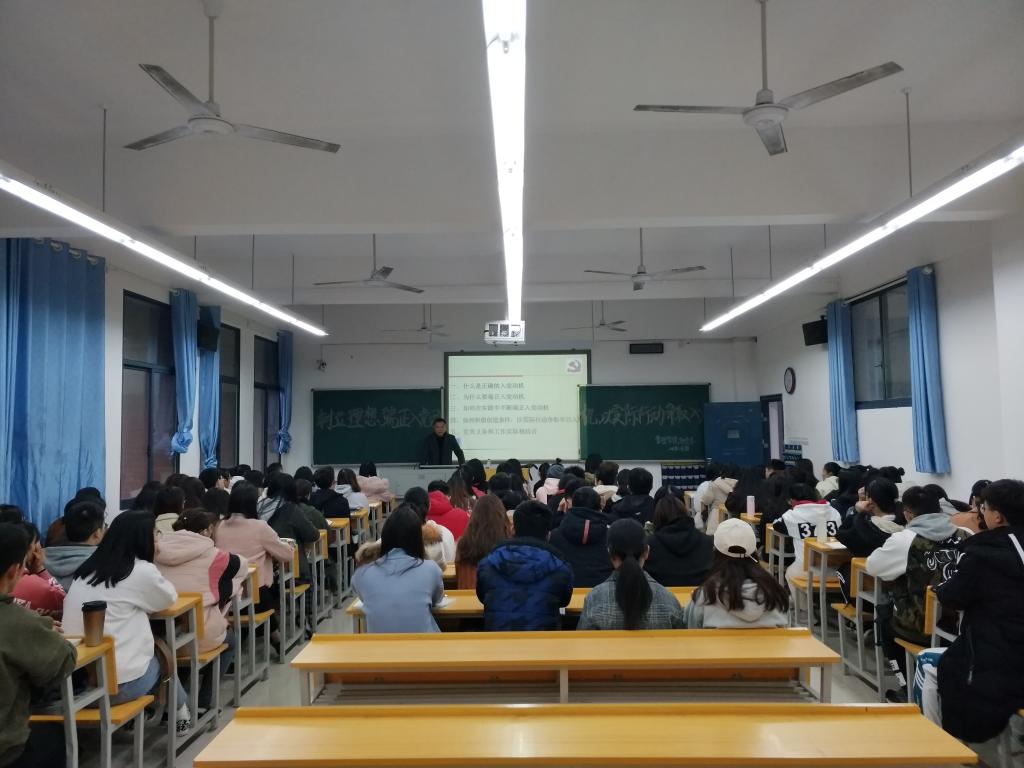 2018年11月17日8:20,主题为“树立理想,端正入党动机,以实际行动争取入党”的党课于管理楼310进行。主讲教师是管理学院党委副书记贺望林。