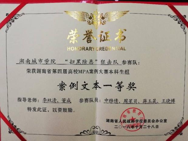 3.校企地协同服务地方经济,提升人才培养质量。承接省住建厅专项课题,统一了湖南省城市管理执法规范化标准;与华为集团、益阳市政府共建智慧城市研究院。近三年,教育部公共管理教学案例入库1项,获国家级大学生创新创业项目4项,省级MPA案例大赛一等奖2项。