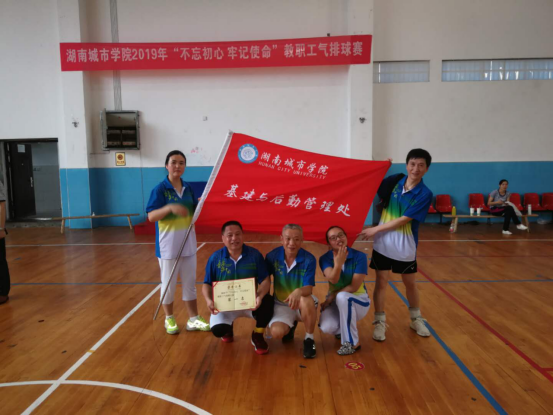 yl6809永利集团官网2019年“不忘初心、牢记使命”教职工气排球比赛于5月23日在学校体育馆拉开帷幕,我处主力队员都将近五十几,他们克服各种困难,为夺冠奠定了基础。女队员易婵娟,家中二个小孩和自己都生病发烧,但她坚持打完吊针按时赶到比赛进行比赛。此次比赛拉拉队也比较拉风,锣鼓、喇叭和起伏不迭的“加油”声,鼓舞了参赛队员的士气。