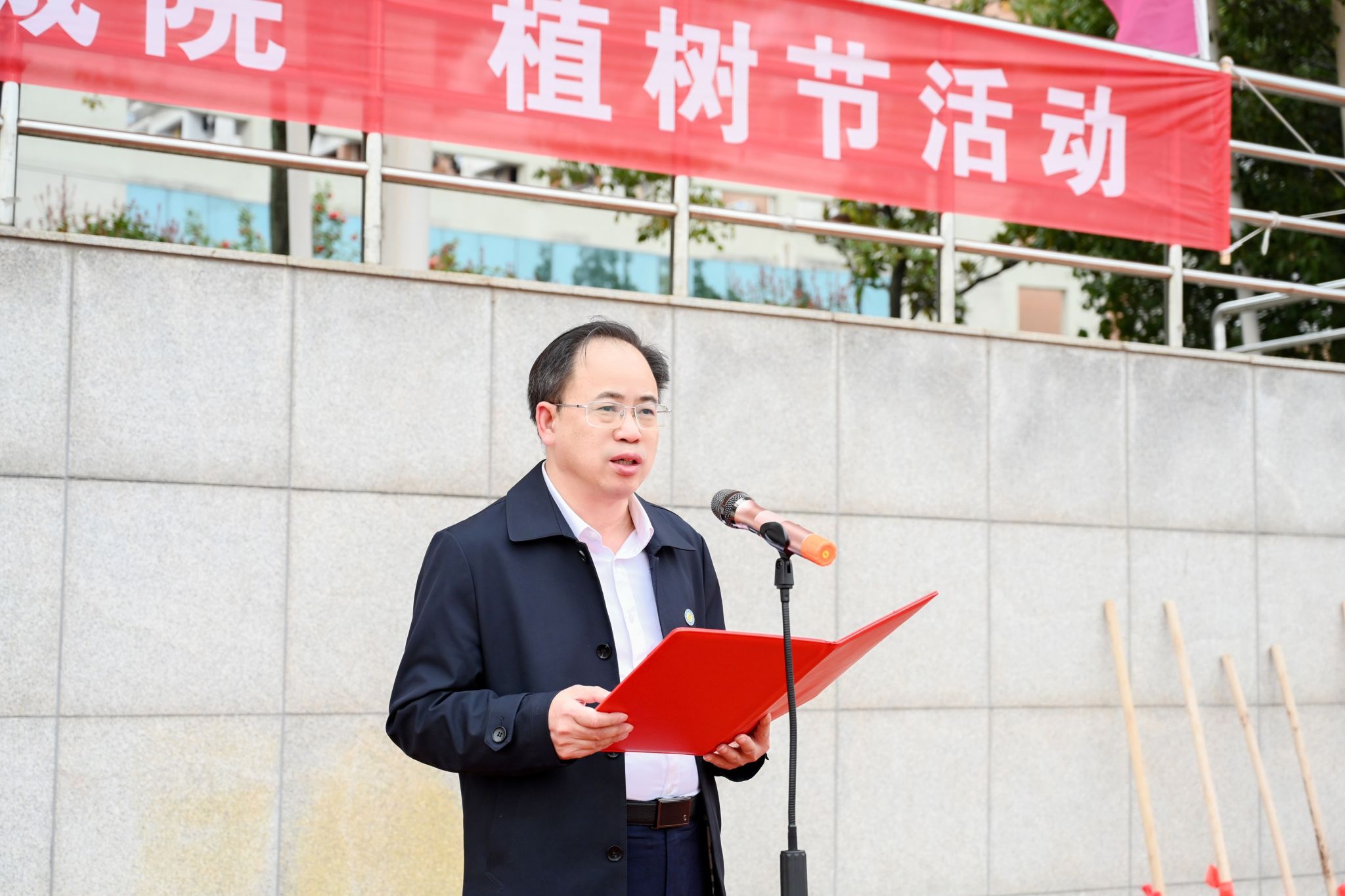 全体中层正职、各职能部门代表、各学院师生代表参加植树实践活动。