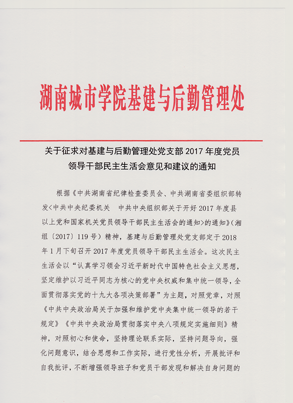 关于征求对基建与后勤管理处党支部2017年度党员领导干部民主生活会意见和建议的通知