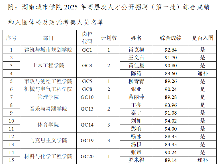 附件:yl6809永利集团官网2025年高层次人才公开招聘(第一批)综合成绩和入围体检及政治考察人员名单
